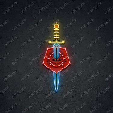 'Love Hurts' electrifies with an LED Neon x Print: a dagger boldly embracing a fragile rose. This piece captures love's paradox—where passion blooms alongside thorns. Ideal for romantics with a sharp sense of humor and a taste for drama. Illuminate your space with a playful nod to love's twists, reminding all that even in romance, a little edge adds intrigue. Perfect for those who appreciate love's complexities and adorn their walls with wit and whimsy!Neon Color: Red, Ice Blue and YellowSize: For exact measurements refer to the cm. The first size in the description is always the longest side of the sign.60cm x 27cm (2ft x 0.9ft)75cm x 33cm (2.5ft x 1.1ft)90cm x 39cm (3ft x 1.3ft)105cm x 45cm (3.5ft x 1.5ft)120cm x 51cm (4ft x 1.7ft)#heartbreak #hope #love